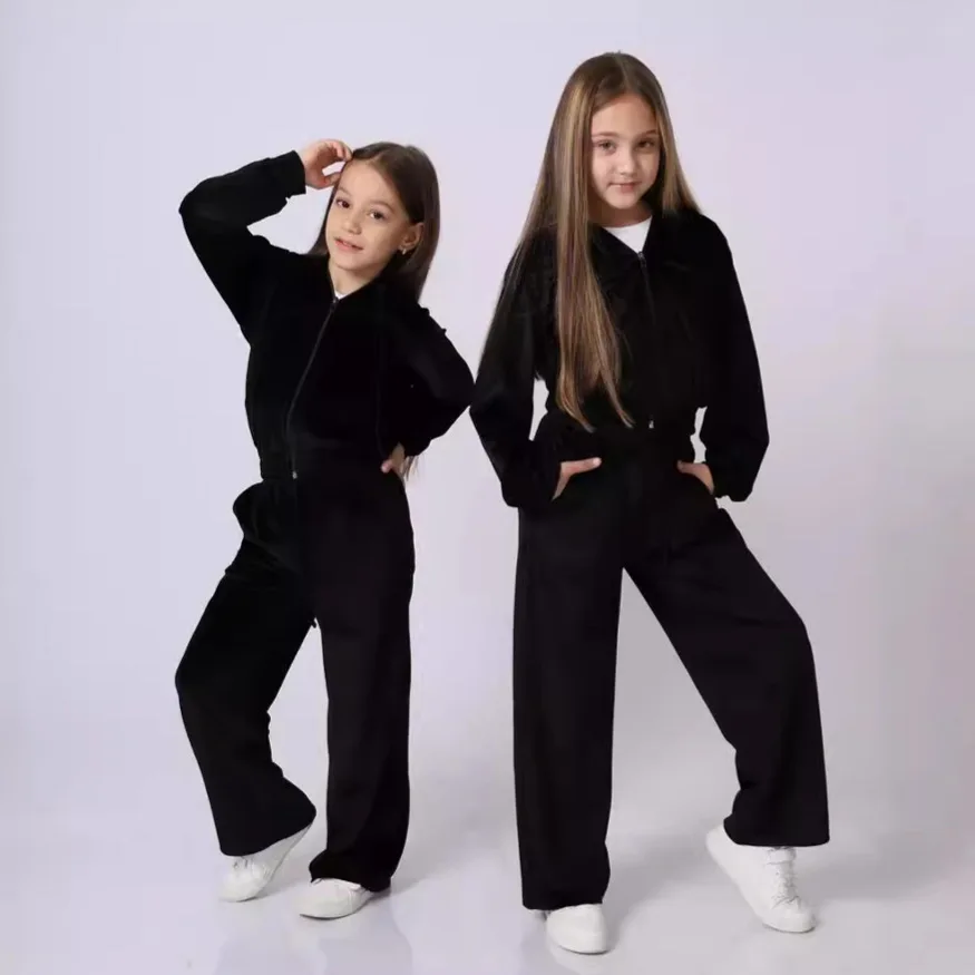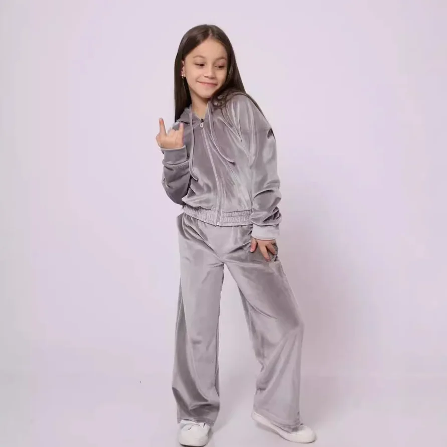 Autumn Winter Girls' Vintage Breathable Sports Velvet Hat Set Two-Piece Sweatshirt Windproof